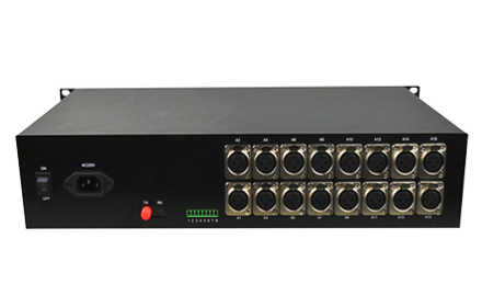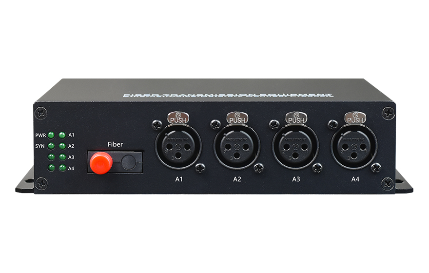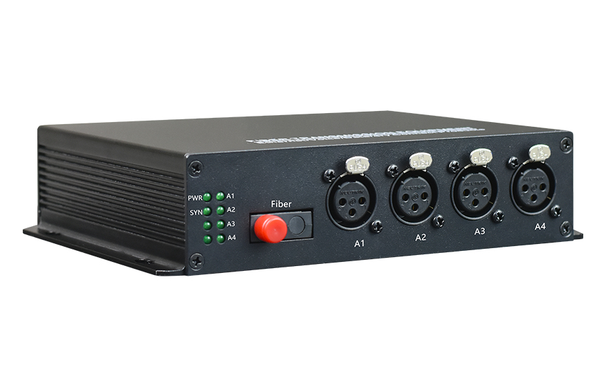 1-4 channels integrated multiplexing audio optical transmitter/receiver adopts digital coding technology, the audio interface is XLR (XLR), which can pass audio signal, data signal, switch signal and Ethernet signal through a single-mode optical fiber Realize long-distance two-way transmission, and the signal can be transmitted up to 100Km without distortion or relay. The audio interface uses 24Bit AD/DA, 128K sampling, studio-level transmission quality.