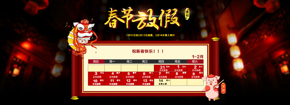 2019.1.31-2019.2.13放假,2月14號(hào)正式上班