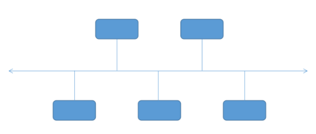 總線拓?fù)浣Y(jié)構(gòu)是將網(wǎng)絡(luò)中的各個節(jié)點(diǎn)設(shè)備用“一根總線”連接起來,實(shí)現(xiàn)計算機(jī)網(wǎng)絡(luò)的功能。任何連接在總線上的設(shè)備都能在總線上發(fā)信號,并且所有設(shè)備都能接收信號??偩€型拓?fù)浣Y(jié)構(gòu)圖如下: