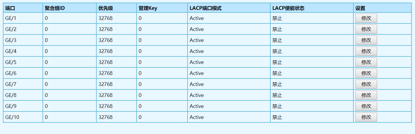 | 修改 | 修改端口的鏈路聚合相關(guān)配置。 |
