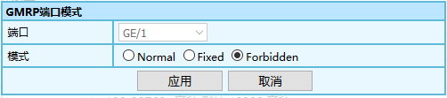 3.如需修改 GMRP 的端口配置,單擊指定端口后面的修改按鈕,進入 GMRP 端口配置修改界面,如下圖所示,,配置好后,然后單擊<應用>。
