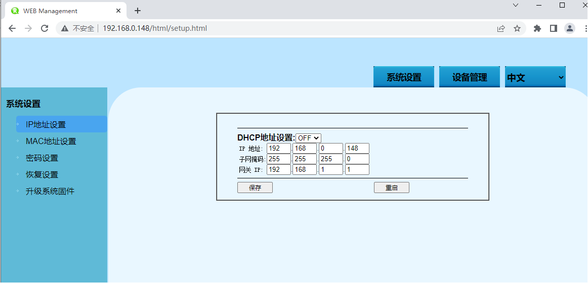 | 升級固件 | 再次使用二進制文件升級系統(tǒng) |