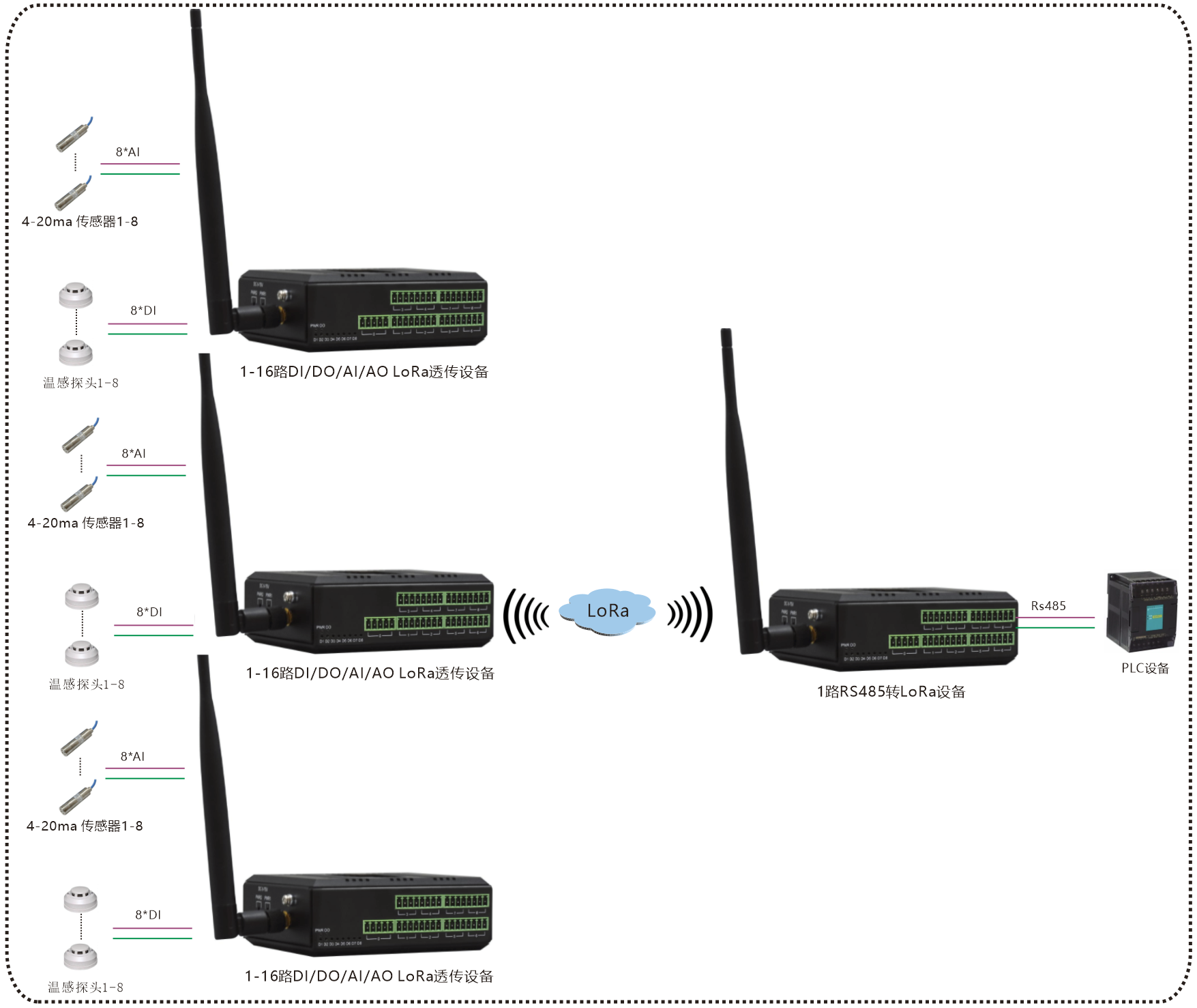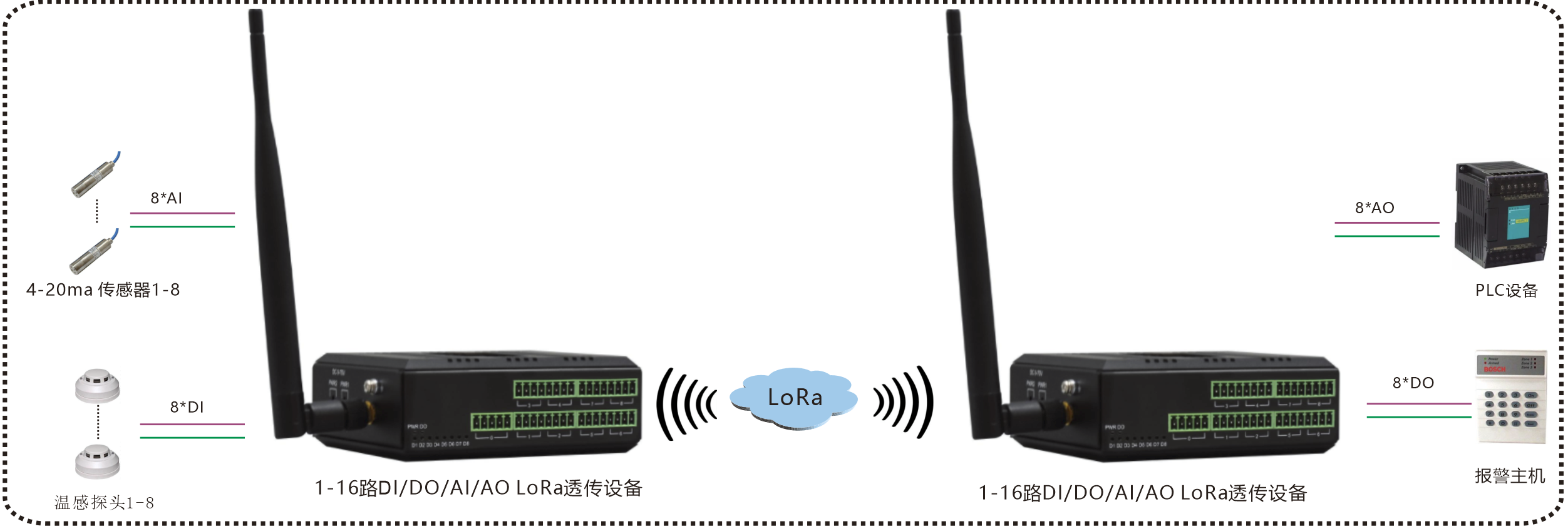 | 業(yè)務端口描述 | 1路Lora接口,16路DI/DO/AI/AO 開關量模擬量 |