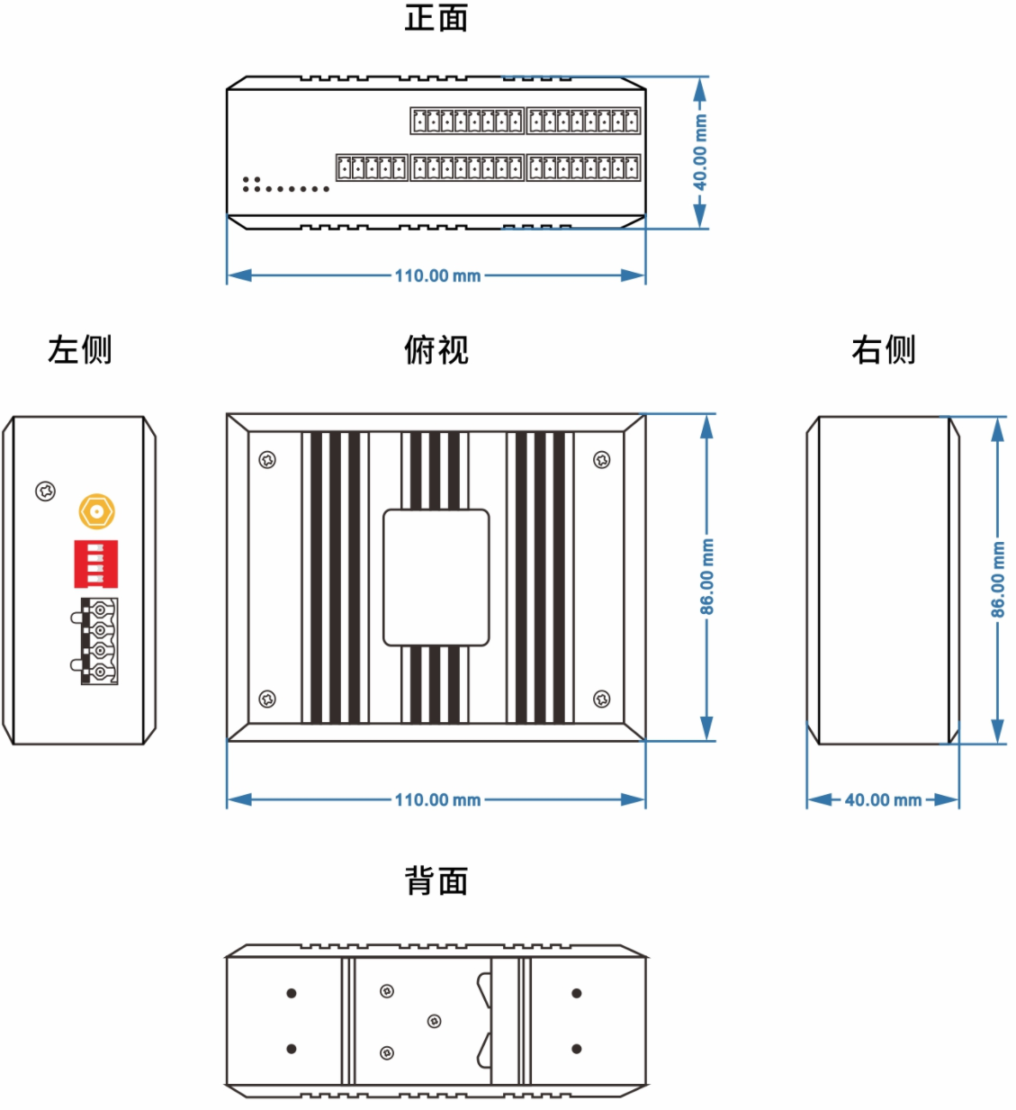 冗余雙電源輸入DC9-70V 或AC7-50V,功耗<5W 過載保護:支持;反接保護:支持;冗余保護:支持 接入端子:4芯5.08mm間距插入式端子 |