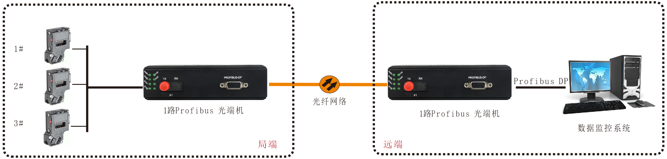• 飛暢科技-工業(yè)軌式 1路Profibus-DP光端機(jī)