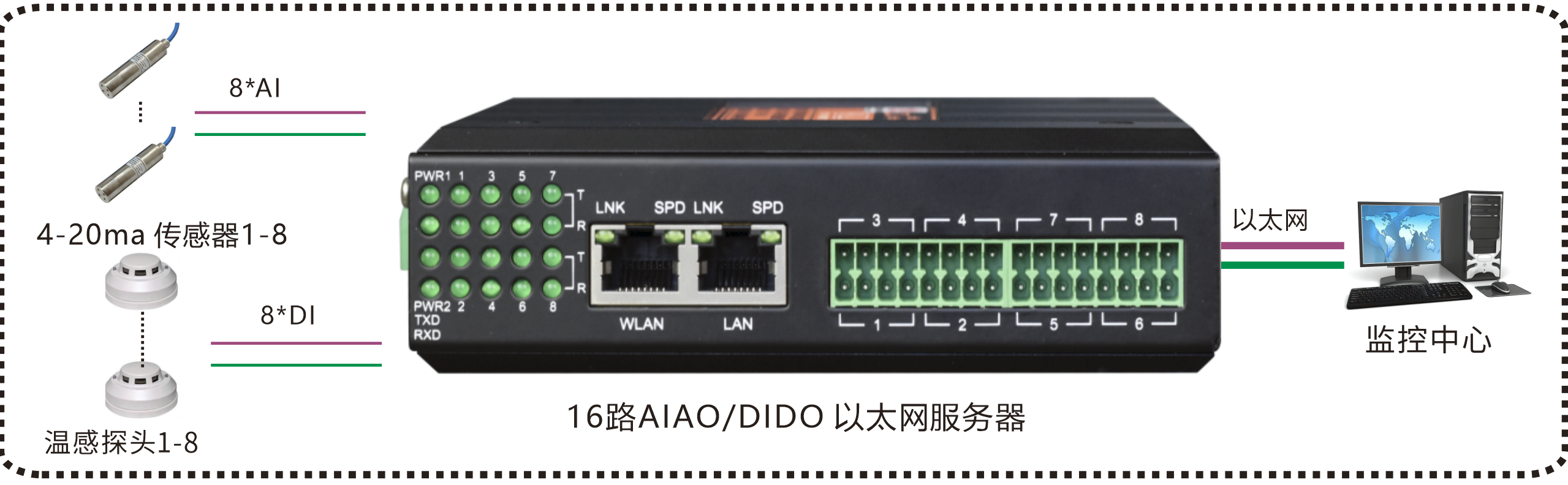 | 業(yè)務(wù)端口描述 | 16路DI/DO/AI/AO接口;2路百兆電口 |