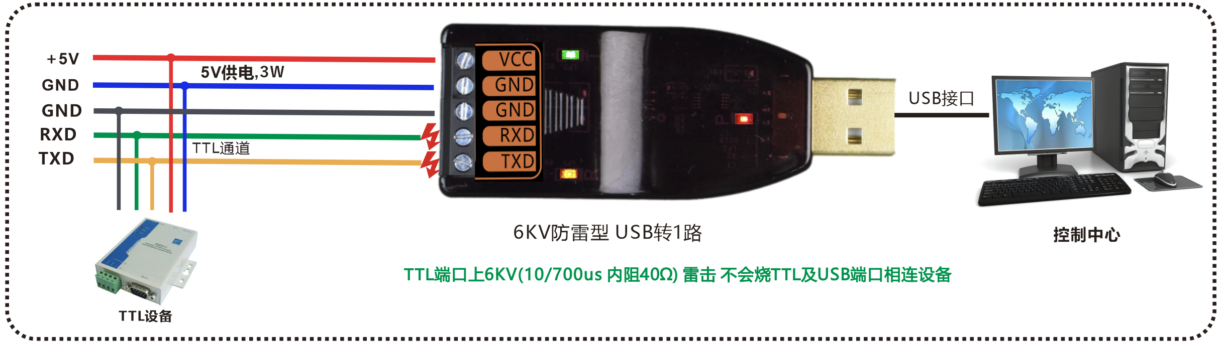 | 產(chǎn)品功能描述 | 防雷型USB轉(zhuǎn)1路TTL轉(zhuǎn)換器 |