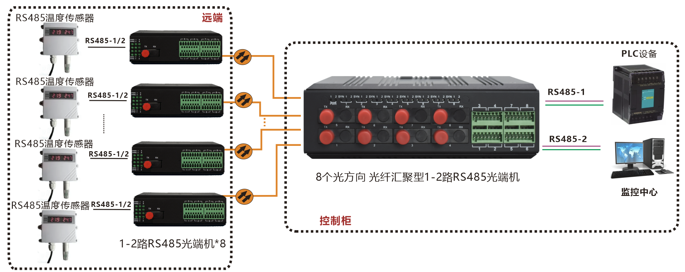 | 產(chǎn)品功能描述 | 8路匯聚光口RS485光端機(jī) |