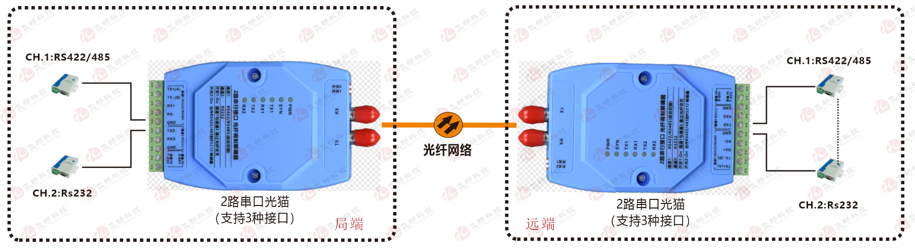 | 產(chǎn)品功能描述 | 在光纖上同時(shí)傳送1路RS422/485串口,與1路RS232串口 |