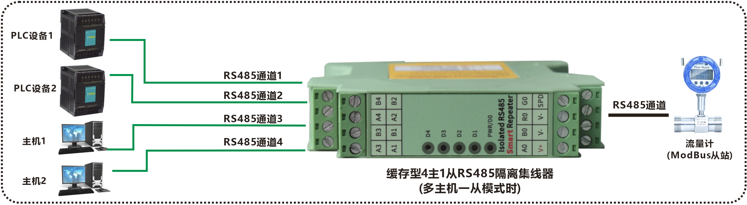 | 產(chǎn)品功能描述 | 緩存型 4主一從RS485隔離集線器 |