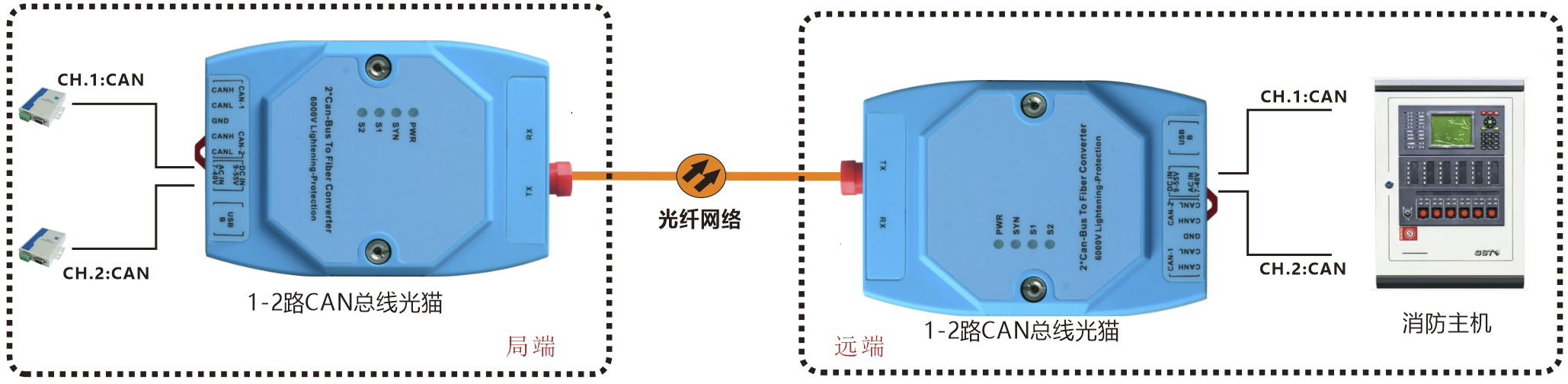| 產(chǎn)品功能描述 | 在光纖上同時傳送1-2路CAN 總線接口 |