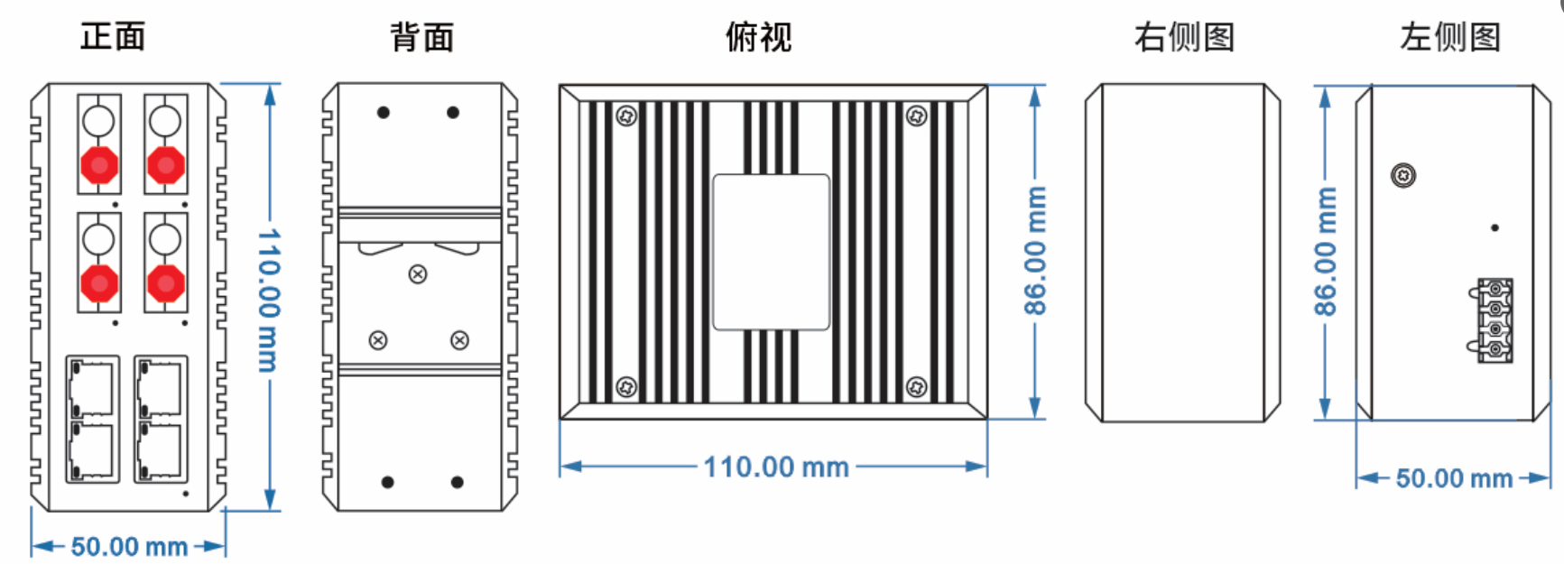 冗余雙電源輸入DC9-70V 過(guò)載保護(hù):支持;反接保護(hù):支持;冗余保護(hù):支持 接入端子:4芯5.08mm間距插入式端子 |