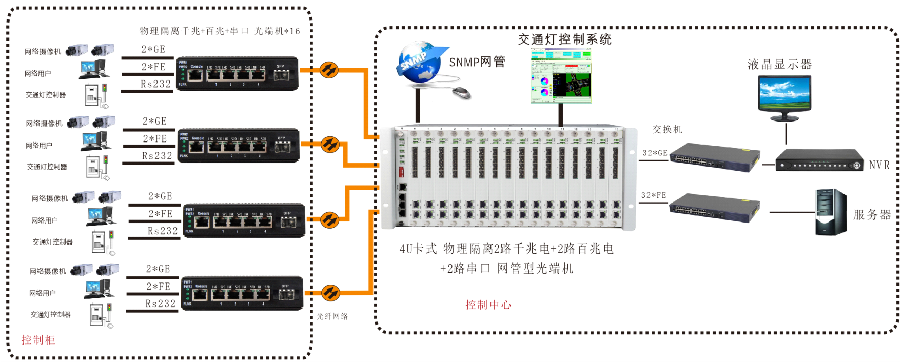 設備基于以太網(wǎng)交換芯片+FPGA方案,帶遠端OAM幀管理功能支持SNMP網(wǎng)管,也可以與4U插卡式的對應設備相連。
