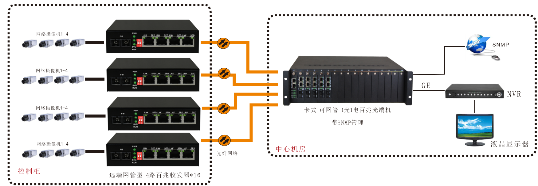| 產(chǎn)品功能描述 | 1-4路百兆以太網(wǎng) 光纖收發(fā)器 電源內(nèi)置,可以雙電源供電 |