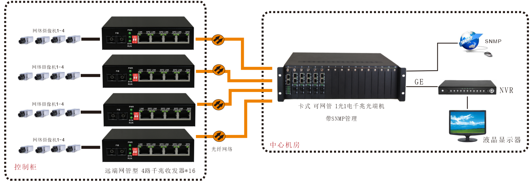 | 產(chǎn)品功能描述 | 可遠端網(wǎng)管型 1-4路千兆以太網(wǎng) 光纖收發(fā)器 電源內(nèi)置,可以雙電源供電 |