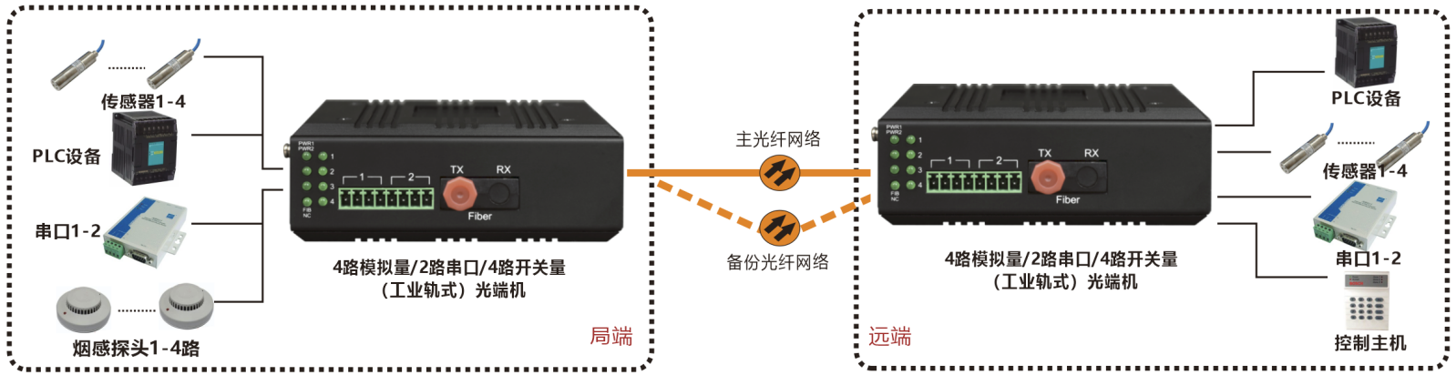 | 業(yè)務(wù)端口描述 | 1個光纖接口;4路模擬量接口 |