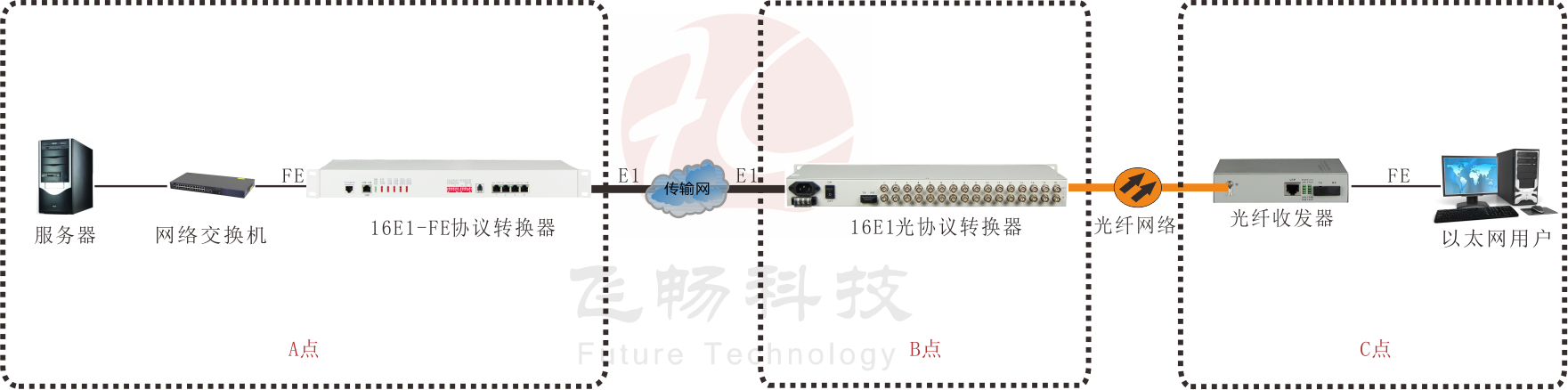 • 飛暢科技-16E1-3FE+1*100ba<x>se-FX 協(xié)議轉(zhuǎn)換器